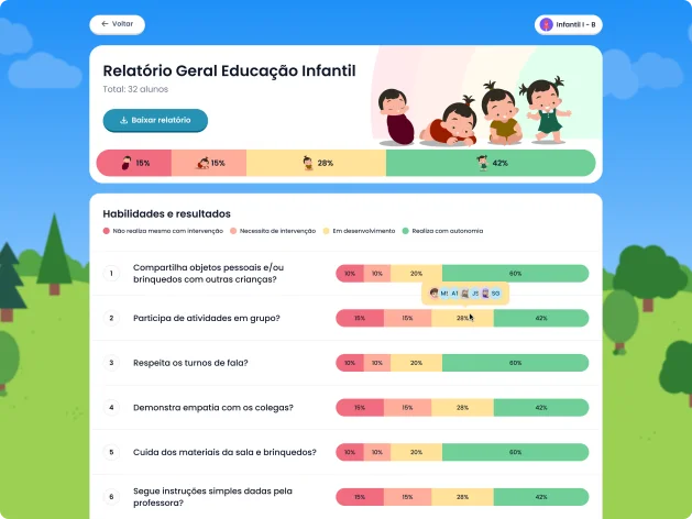 Professores da Educação Infantil contam com ferramentas lúdicas e personalizadas para engajar, acompanhar e registrar o desenvolvimento das crianças mais leves, lúdico e eficiente.